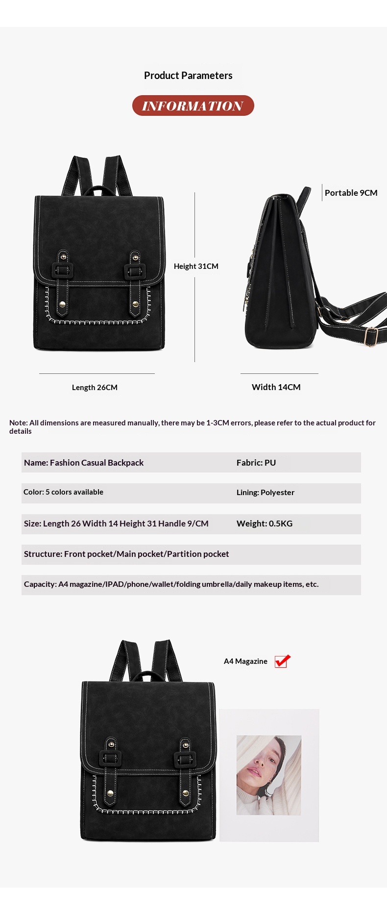 New Korean-style Fashionable Casual Womens Backpack