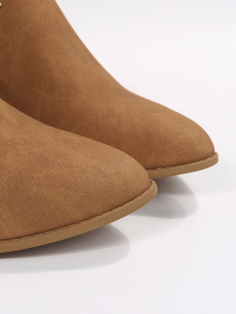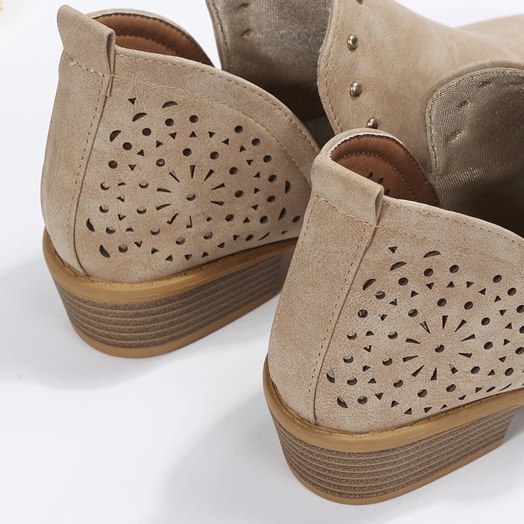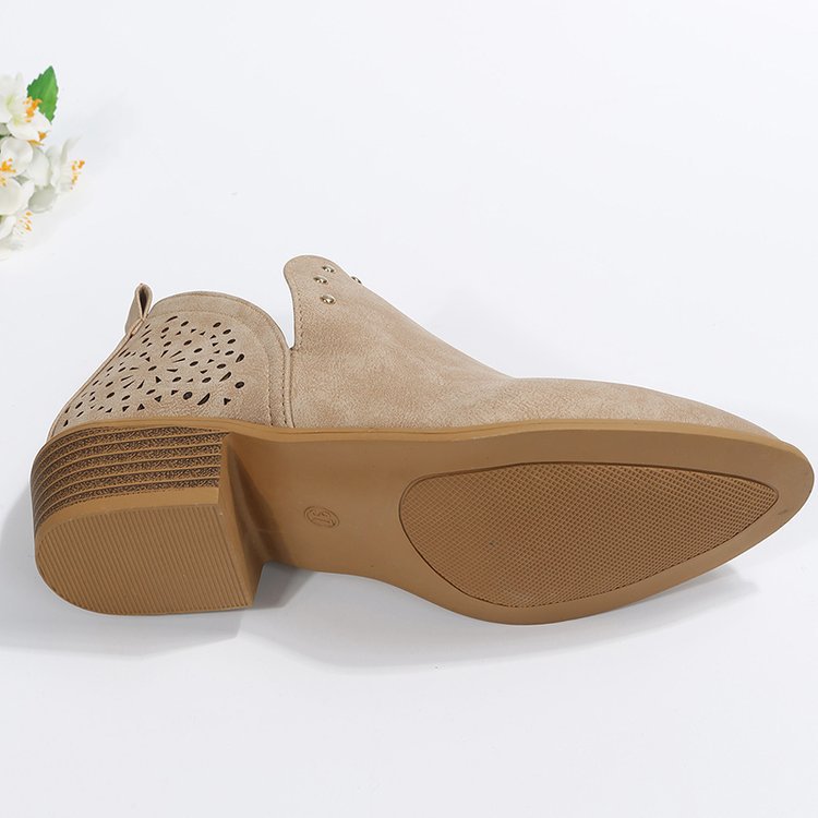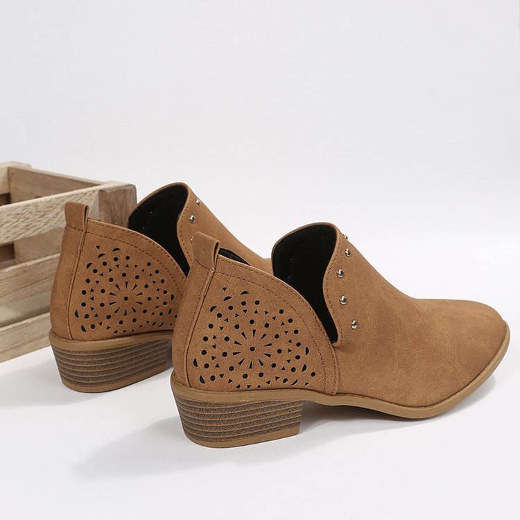 Retro Pointed-toe Studded Low-heeled Ankle Boots
