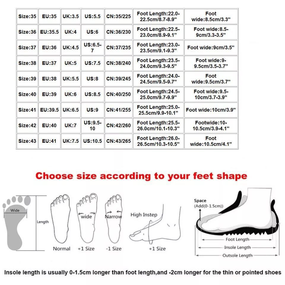 Sizes: 35, 36, 37, 38, 39, 40, 41, 42, 43