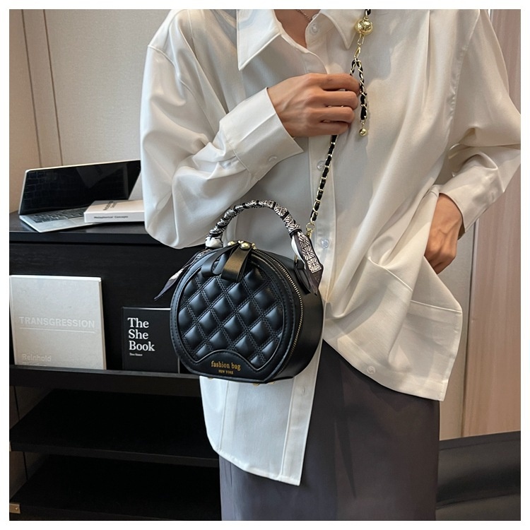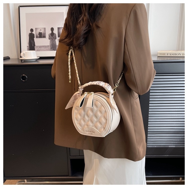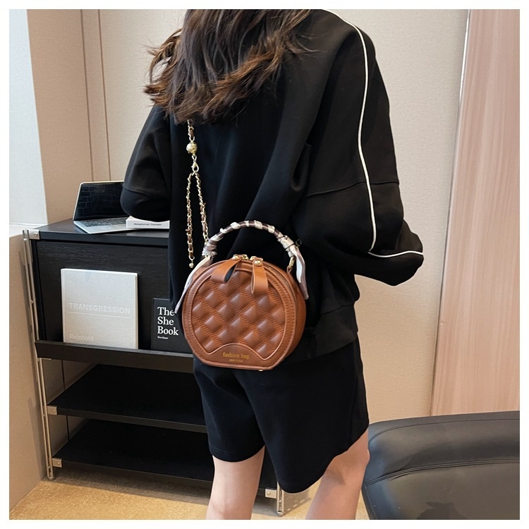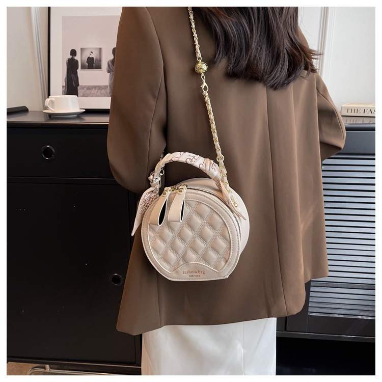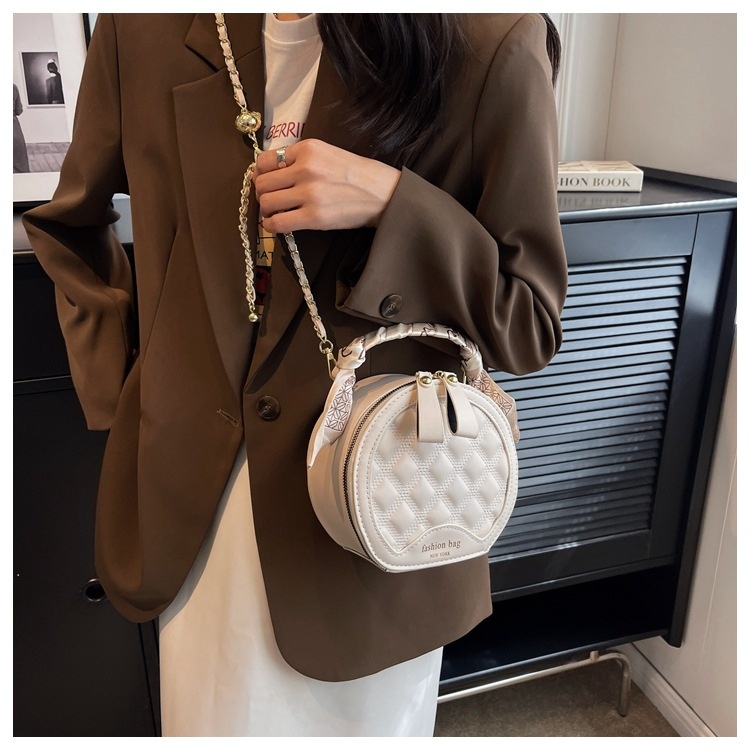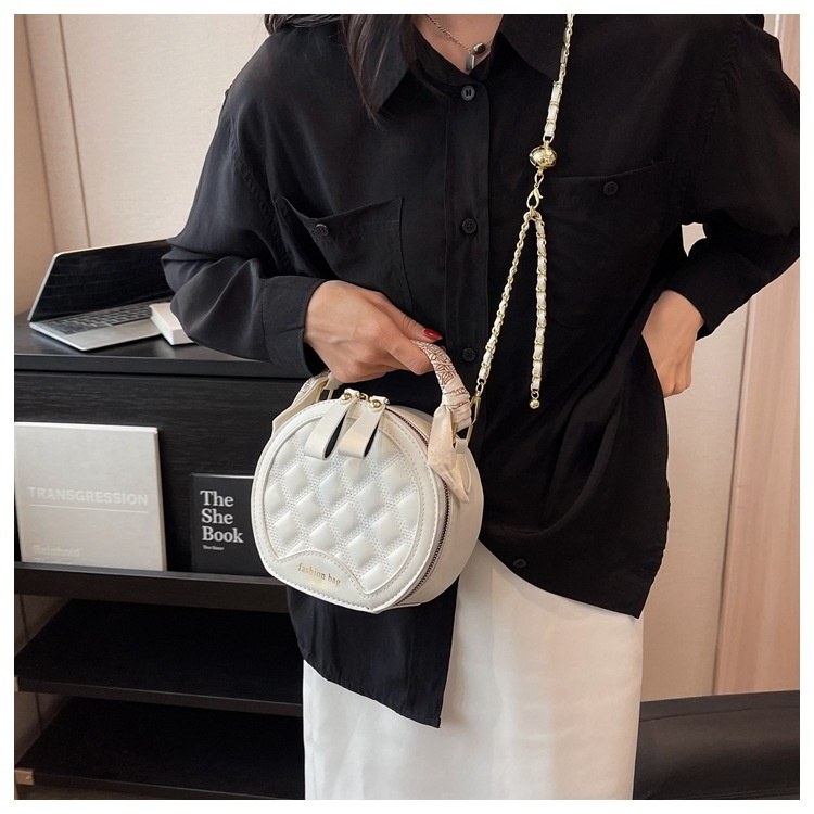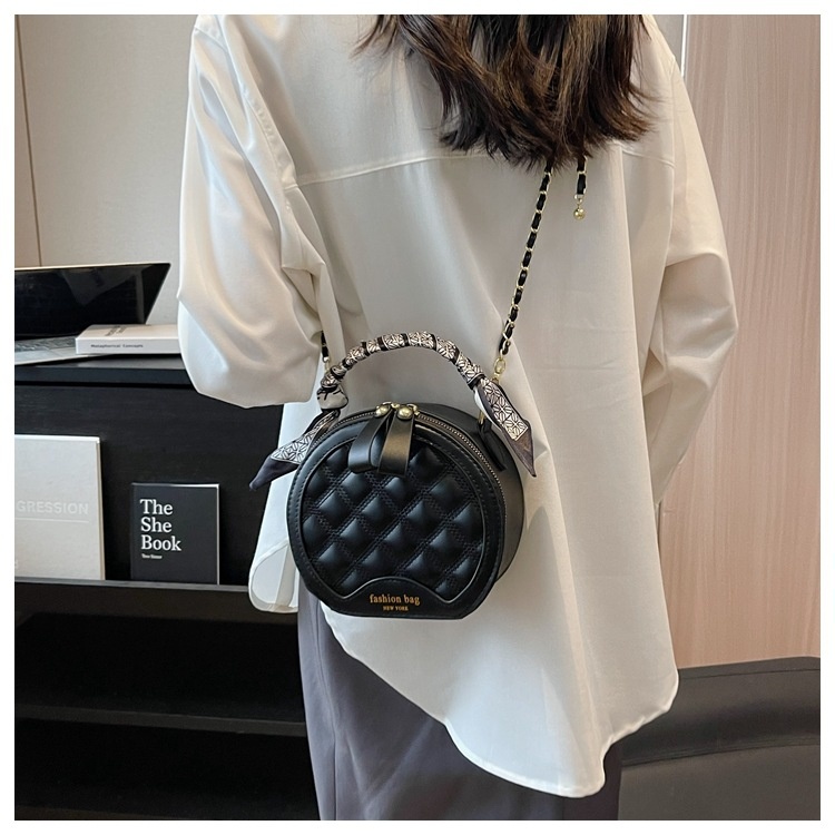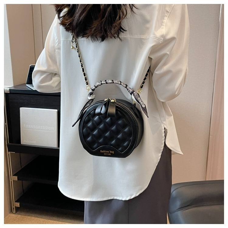 Small Round Diamond-patterned Embroidered Women's Bag