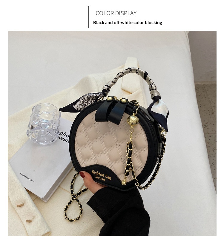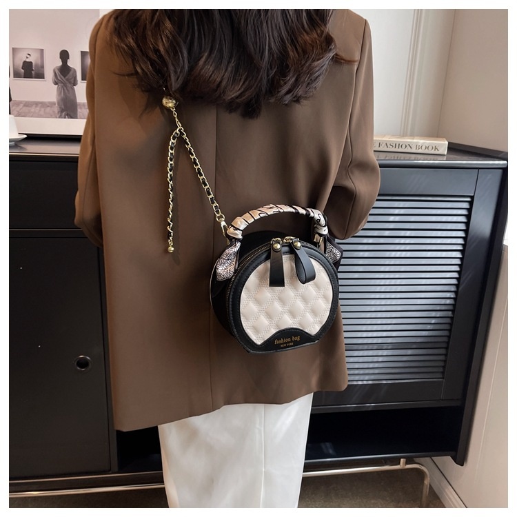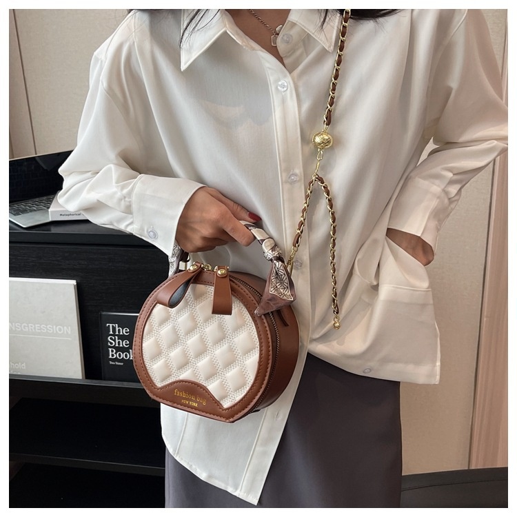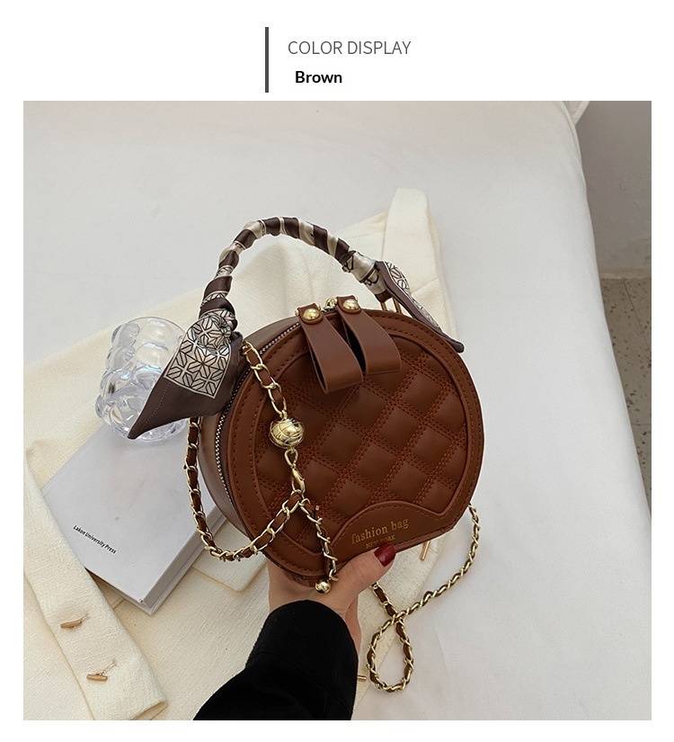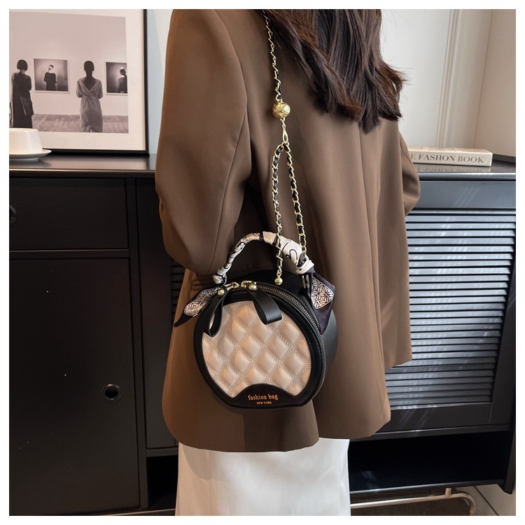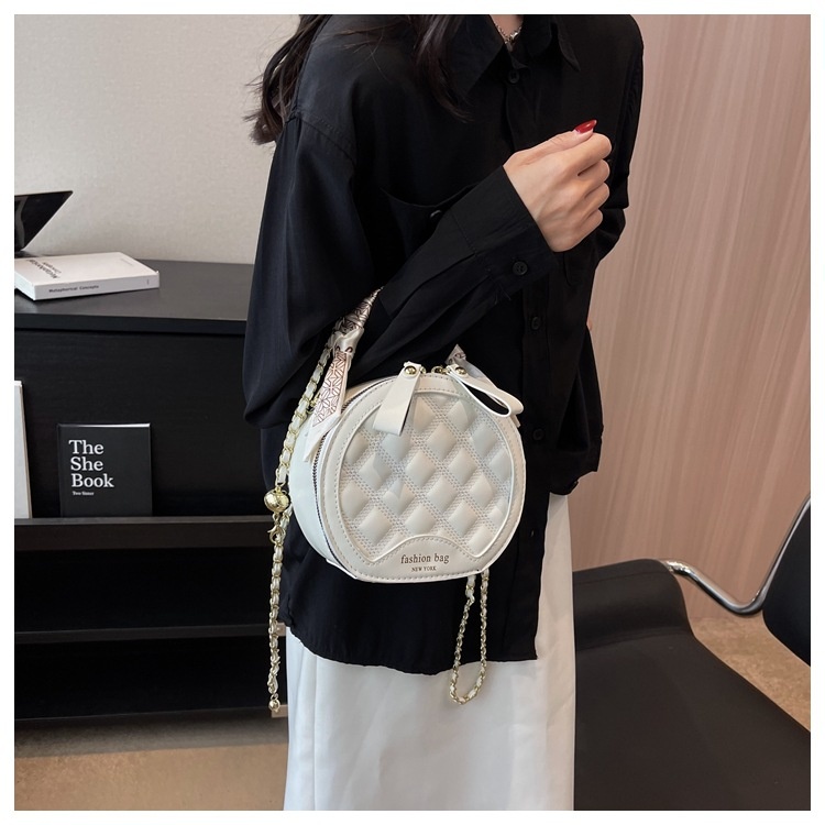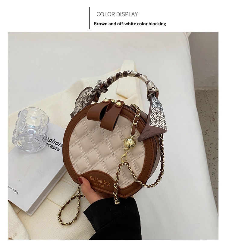 Small Round Diamond-patterned Embroidered Women's Bag