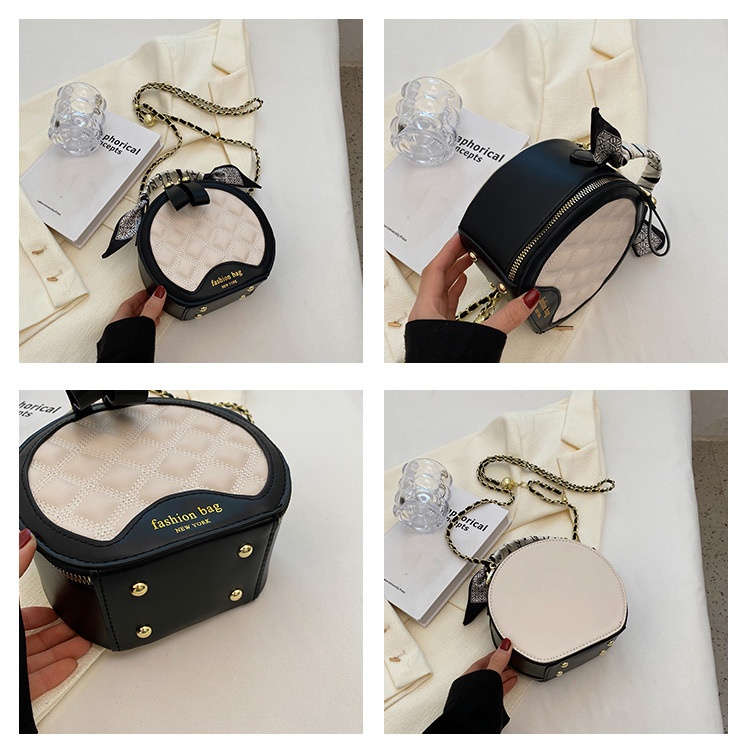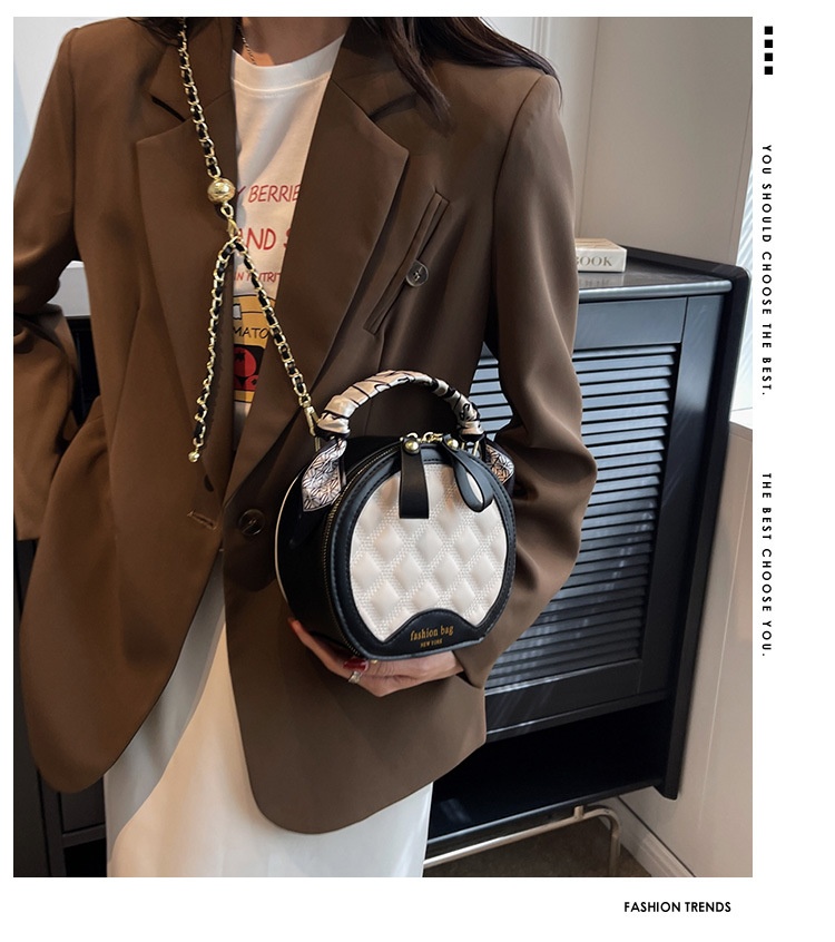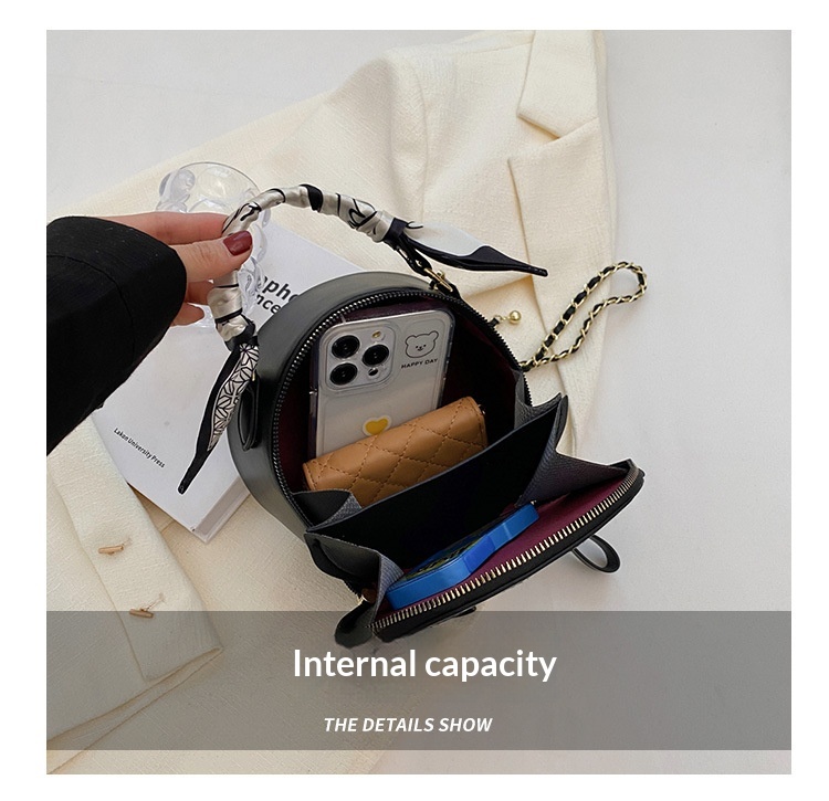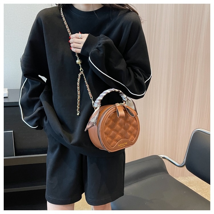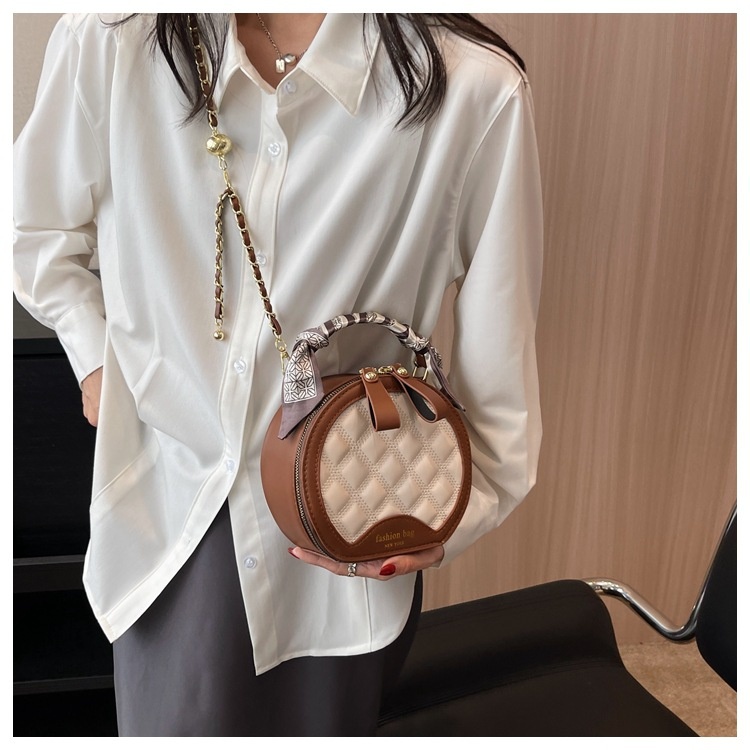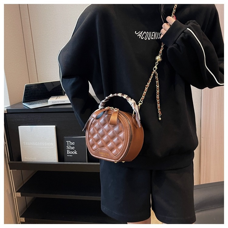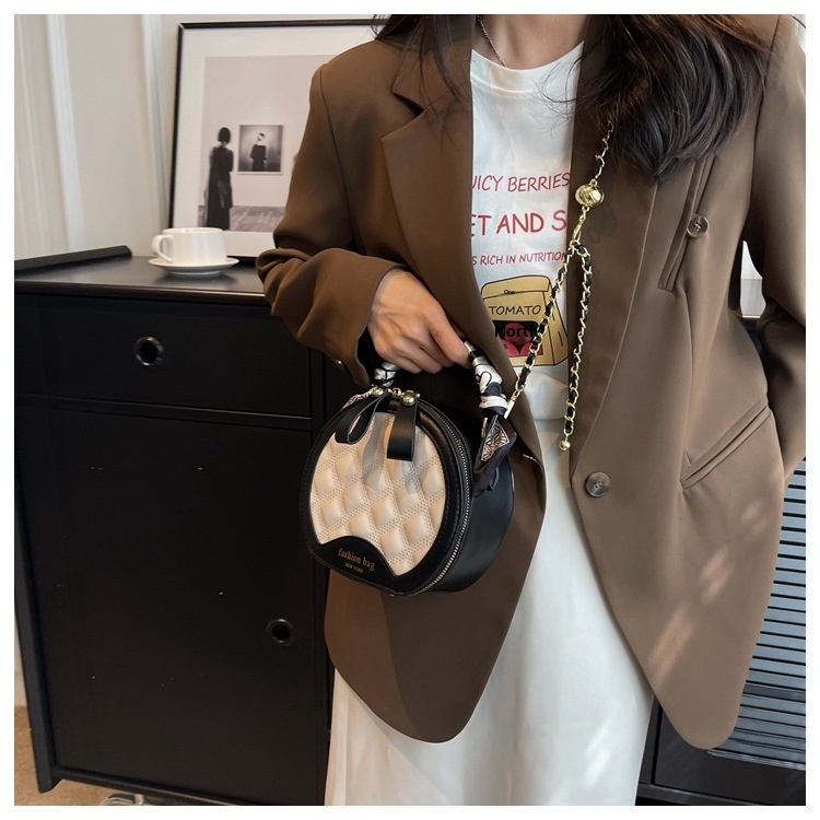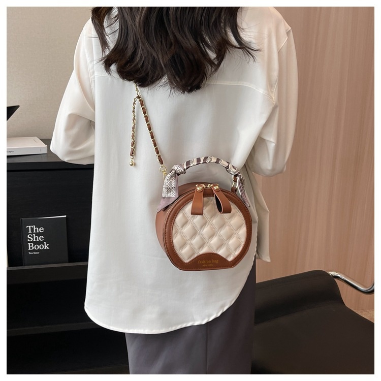 Small Round Diamond-patterned Embroidered Women's Bag