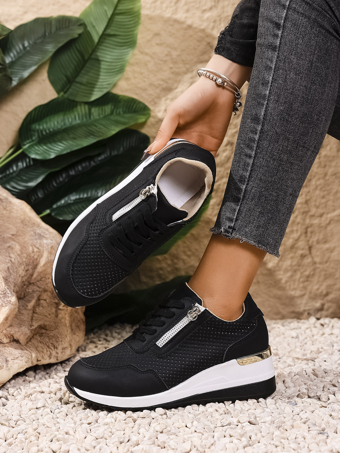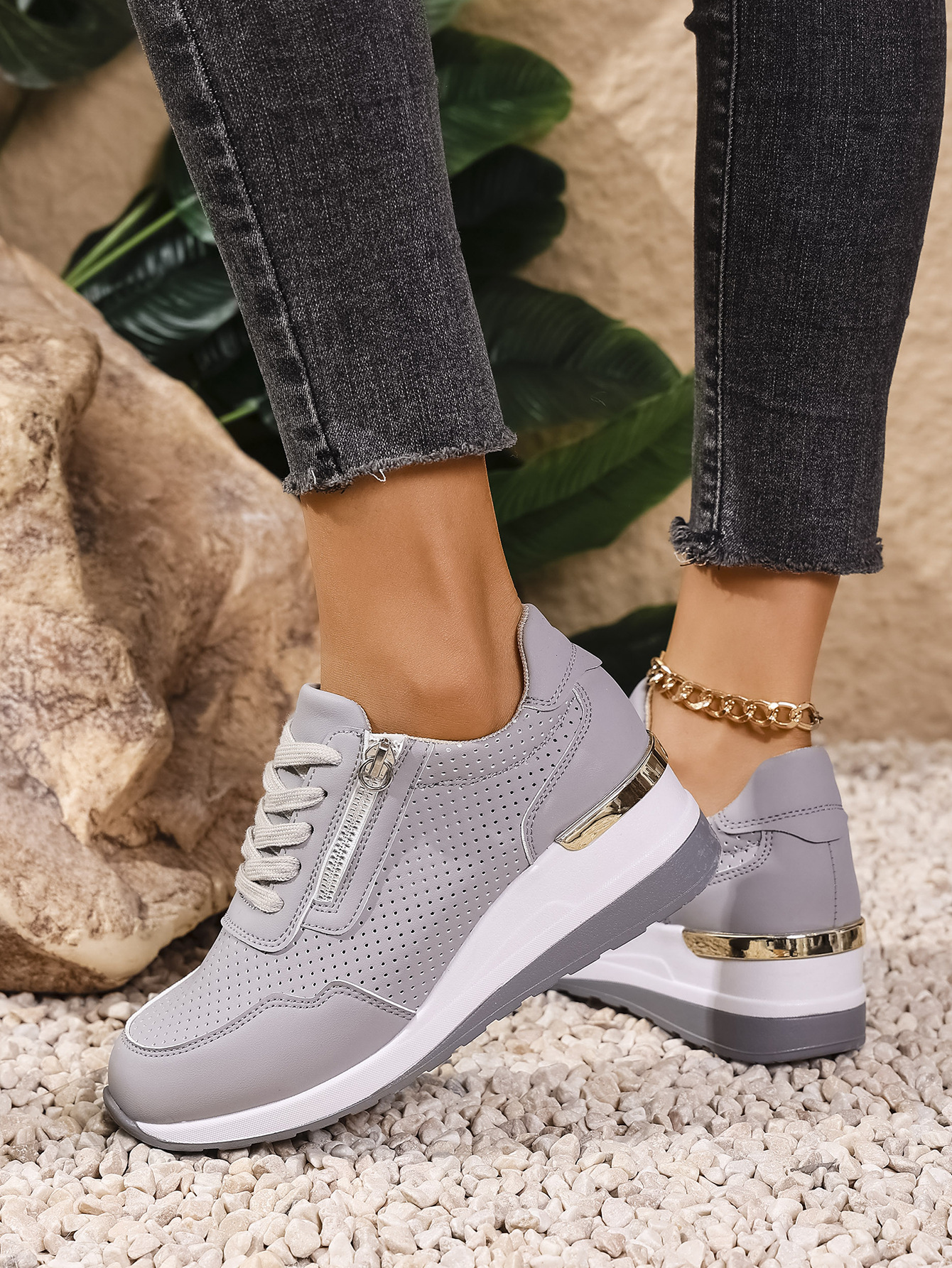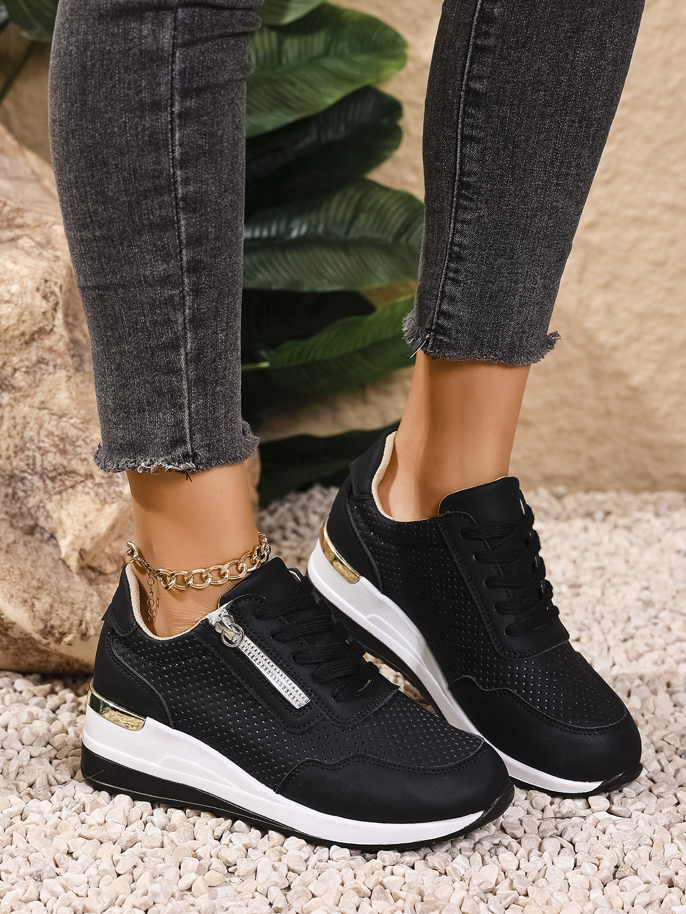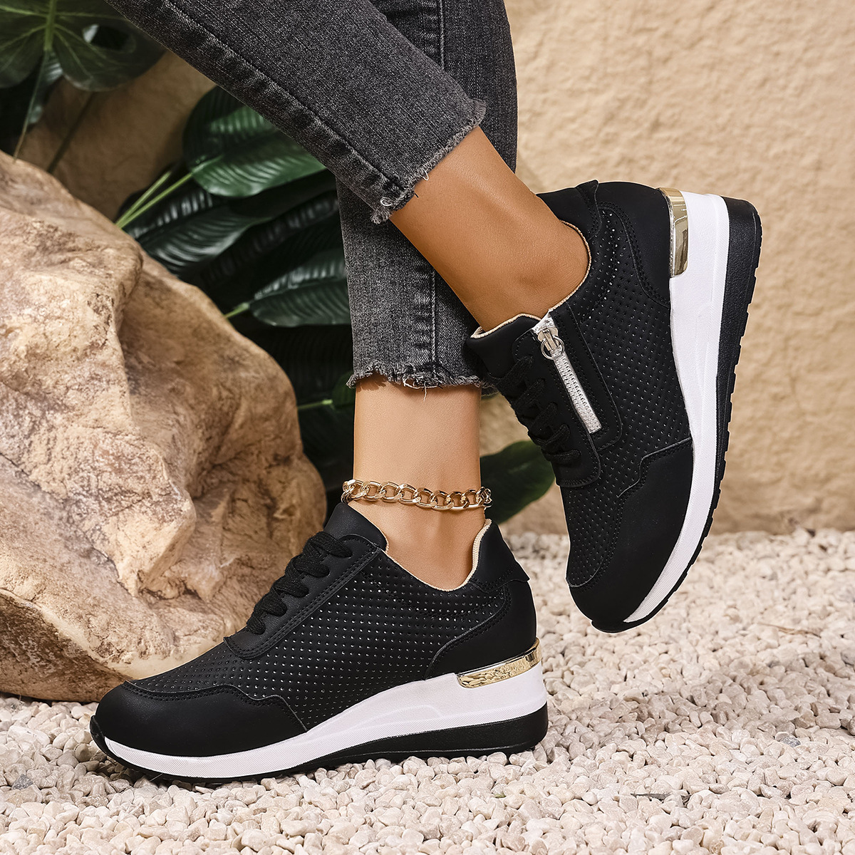 Womens Casual Wedge Mid-heel Lace-up Athletic Shoes
