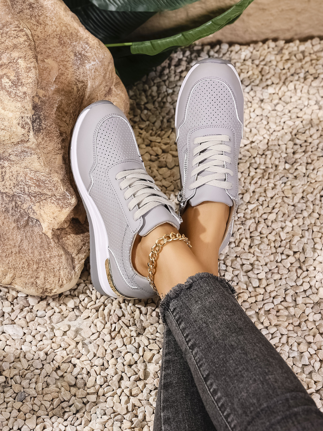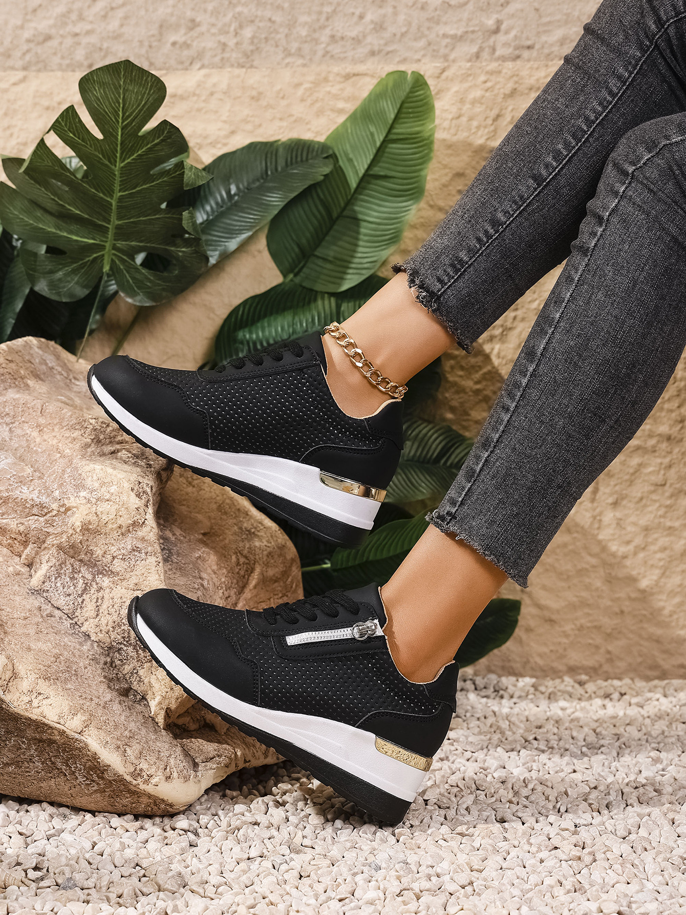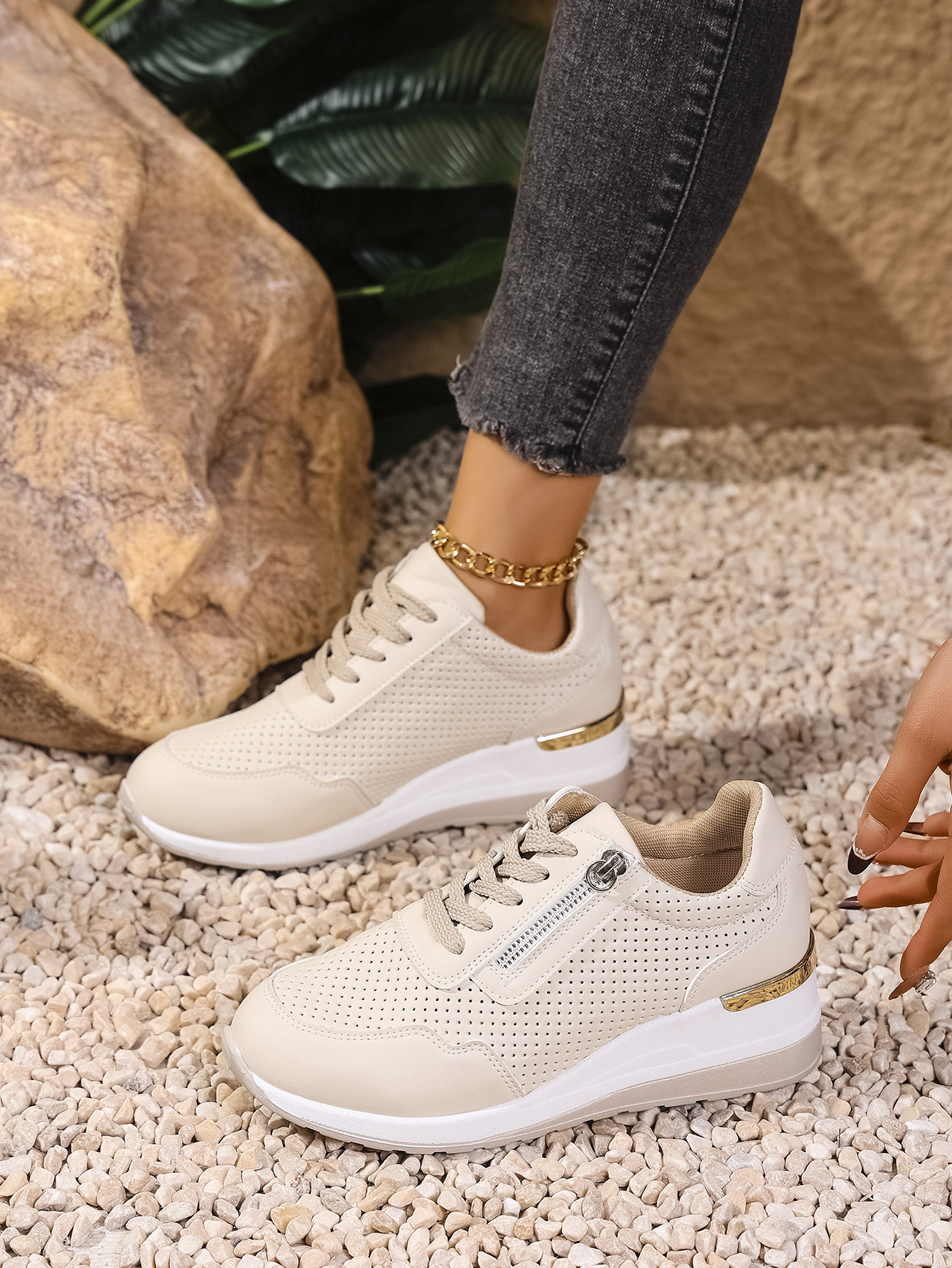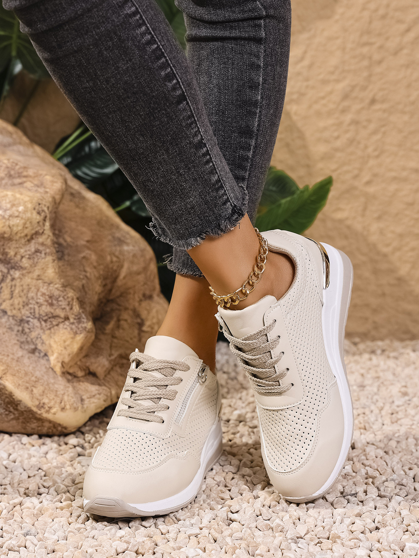 Womens Casual Wedge Mid-heel Lace-up Athletic Shoes